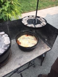 The Dutch ovens, Jeff’s moose lasagna and Ron’s brownies and bread, it was all so good!